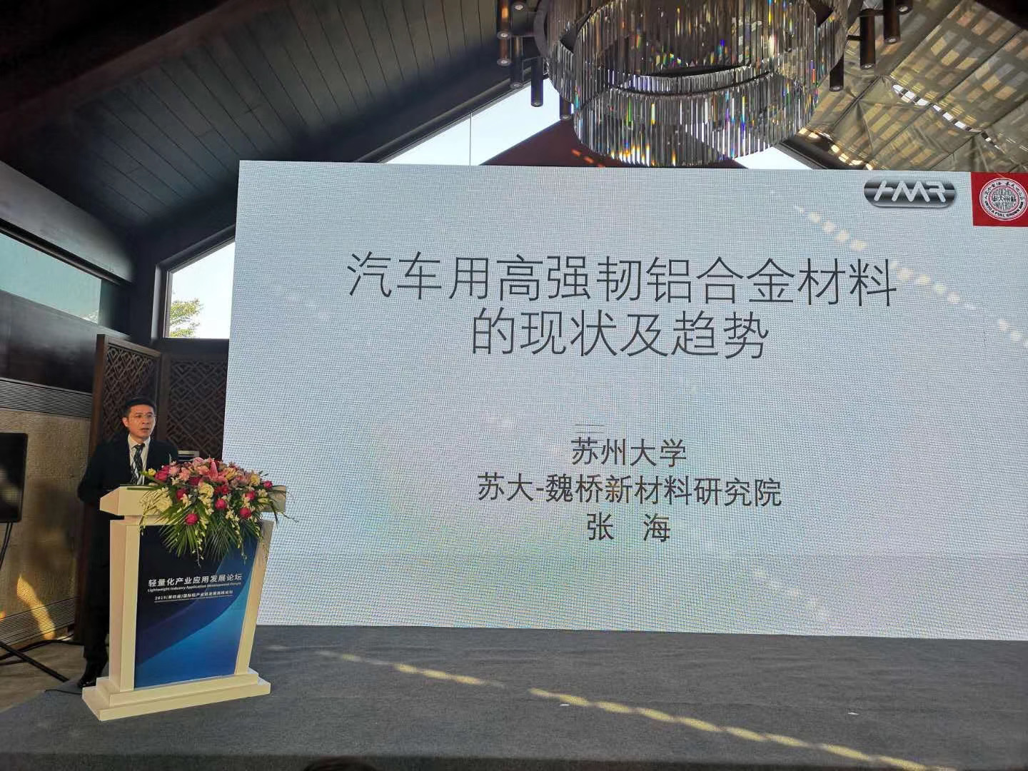 苏州大学(魏桥)新材料应用研究院院长、教授张海作《中国汽车轻量化铝合金应用进程与展望》、《汽车用高强韧铝合金材料的现状及发展趋势》的专题报告,一汽解放、东风汽车、中车集团等多家整车、设备制造企业负责人到场。